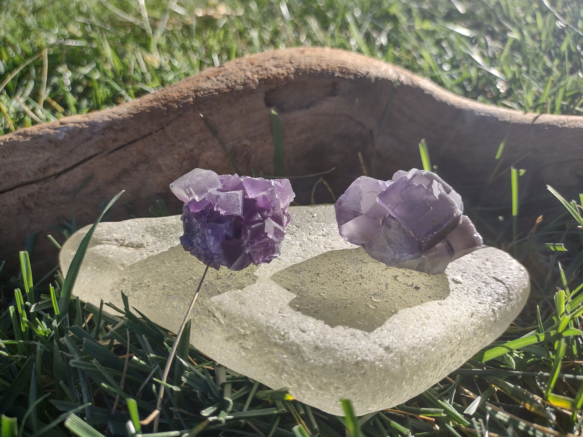 Fluorite (also called fluorspar) can be many colors due to mineral impurities, but is mainly the mineral form of calcium fluoride, CaF2. These small crystals from Weishan Mine, Yunan, China range from deep purple to dusky blue.